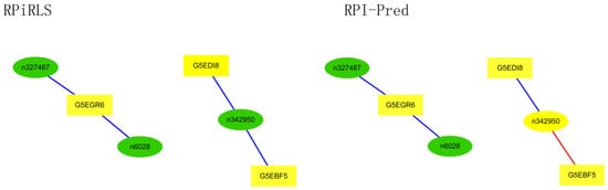 Comparison of the long non-coding RNA-protein interaction networks predicted by the RPiRLS and RPI-Pred methods, for Escherichia coli.