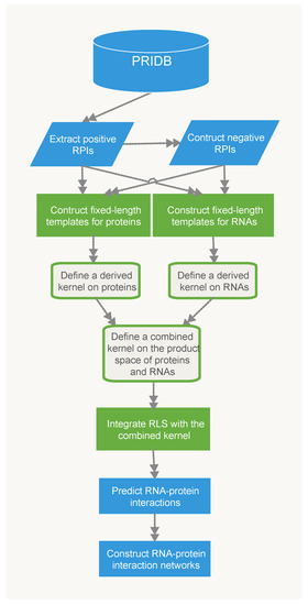 Mammalian cells contain more than 1000 different proteins interacting with RNA [3]. Normally, any individual RNA can interact with multiple proteins [11,40]. Conversely, most proteins are capable of interacting with multiple RNAs [41]. Given the number of RNAs and RNA-binding proteins, the number of possible RPIs is enormous. High-throughput sequencing methods have accumulated huge amount of RNA-protein binding experimental data and opened new possibilities to measure and understand RNA-protein interactions by computational methods. Most of the previous computational works on RPIs focus on the prediction of RNA-binding proteins or RNA-binding residues in a protein sequence [34,42,43,44]. To our knowledge, very limited works have been developed to predict the specific associations between RNAs and proteins, which play a critical role in post-transcriptional gene regulatory networks. Complex networks of RPIs mediate post-transcriptional gene regulation and therefore prediction of RPIs helps us to gain insight into regulatory networks [45,46].