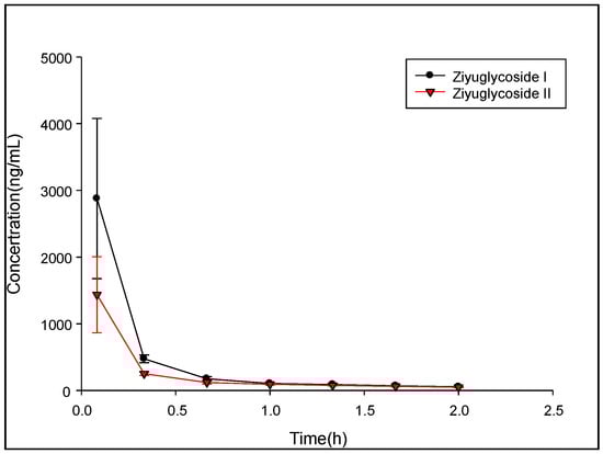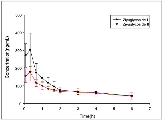 - Ye, W.; Fu, H.X.; Xie, L.; Zhou, L.J.; Rao, T.; Wang, Q.; Shao, Y.H.; Xiao, J.C.; Kang, D.; Wang, G.J.; et al. Development and validation of a quantification method for ziyuglycoside I and II in rat plasma: Application to their pharmacokinetic studies. J. Sep. Sci. 2015, 38, 2340–2347. [Google Scholar] [CrossRef] [PubMed]
