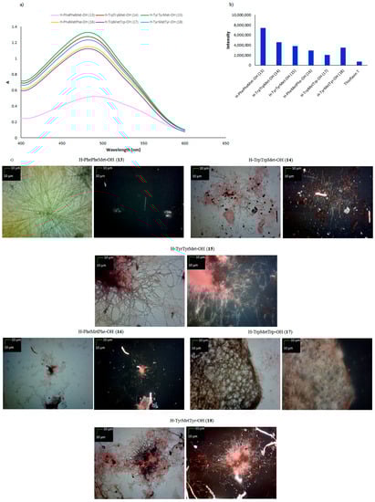 | H–PhePheMet–OH (13) | + | + | + fibrous structure |