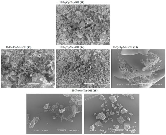 | H–TyrTyrMet–OH (15) | +/− | +/− | +/− cluster of fibrous and amorphous structures |