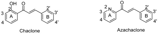 Azachalcone is another class of the chalcone family in which the carbons of either rings A or B or both were replaced with a nitrogen atom. Because of their structural similarity, azachalcones were synthesized with the same strategy as for chalcones, in which the substituted acetophenone was replaced with 2-acetyl pyridine [26,27]. Studies have shown that azachalcones possess anti-bacterial, anti-inflammatory, and anti-cancer properties [28,29,30,31]. Azachalcones also served as precursors for synthesis of pyrazolines and pyrazoles [32].