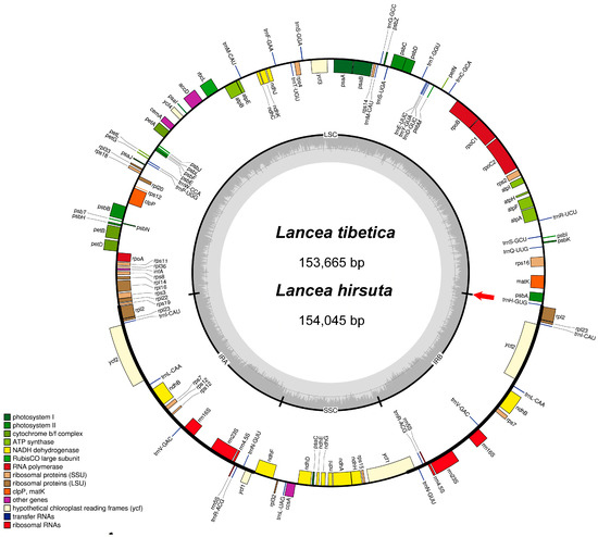 Table 1. The basic chloroplast genome characteristics of Lancea tibetica and L. hirsuta.