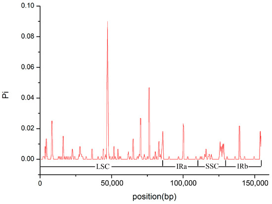 Figure 5. Sliding window analysis of nucleotide variability (pairwise divergence) between Lancea tibetica and L. hirsuta.