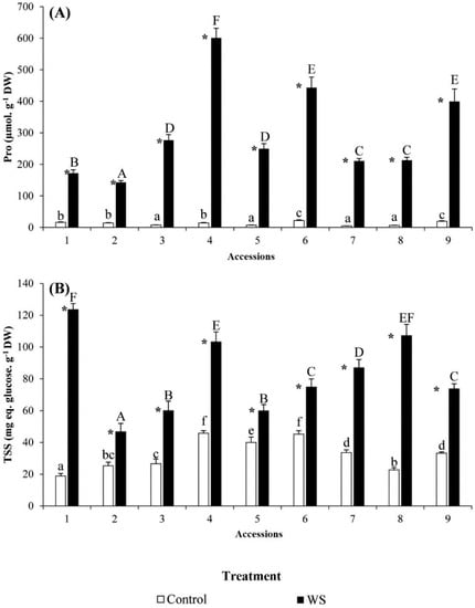 - Guo, P.; Baum, M.; Grando, S.; Ceccarelli, S.; Bai, G.; Li, R.; von Korff, M.; Varshney, R.K.; Graner, A.; Valkoun, J. Differentially expressed genes between drought-tolerant and drought-sensitive barley genotypes in response to drought stress during the reproductive stage. J. Exp. Bot. 2009, 60, 3531–3544. [Google Scholar] [CrossRef] [PubMed]
