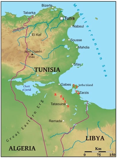 - El Faleh, M.; Mdimagh, S. Food barley in Tunisia. In Food Barley: Importance, Uses and Local Knowledge; Grando, S., Macpherson, H.G., Eds.; ICARDA: Aleppo, Syria, 2005; pp. 29–35. [Google Scholar]