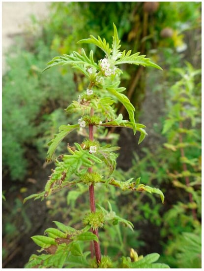 L. europaeus, a plant native to Europe and Asia, is used in traditional medicine as an astringent, narcotic, and refrigerant []. Moreover, it is traditionally used in patients with slight hyperthyroidism and with vegetative-nervous disturbances []. This activity was recently confirmed in a study where a treatment with the extract of L. europaeus reduced the symptoms of hyperthyroidism in rats []. In addition to its medical usage, L. europaeus was also reported as a cosmetic agent []. Traditionally, the juice of the plant was used to produce a black dye used by gypsies (“gypsywort”) to tan their skin, supposedly to mimic Egyptians in Europe []. Moreover, the water extract of the leaves of the plant showed bactericidal activity on Staphylococcus aureus, which is one of the most frequent agents of skin infections. Therefore, L. europaeus could be considered a promising source of an antibacterial agent for topical usage [].