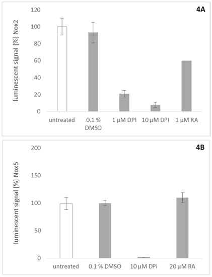 2.5. Effect of Rosmarinic Acid on Nox2 and Nox5 Activity