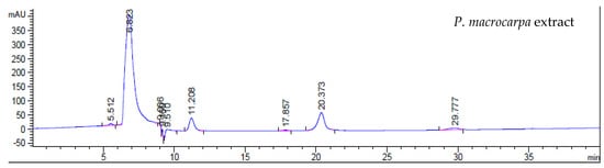 3.5. Phytochemical Screening of P. macrocarpa Fruit