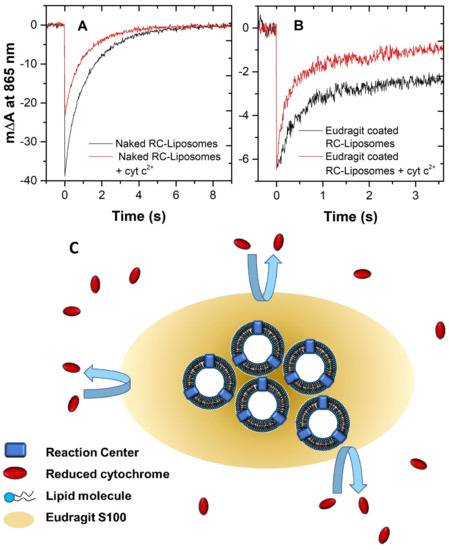 - Milano, F.; Agostiano, A.; Mavelli, F.; Trotta, M. Kinetics of the quinone binding reaction at the QB site of reaction centers from the purple bacteria Rhodobacter sphaeroides reconstituted in liposomes. Eur. J. Biochem. 2003, 270, 4595–4605. [Google Scholar] [CrossRef] [PubMed]