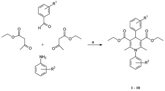 Synthesis of the 1,4-dihydropyridines 1–10, (a) MeOH, EtOH, 8–10 h reflux.