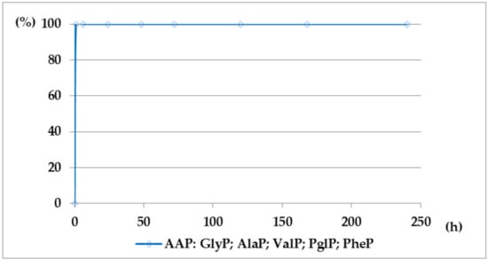 The (AC)-AAP contain amidic functions, which has a hydrolytic sensitivity that should be dependent on the structure of their acyl moieties and on the type of applied hydrolytic medium [49]. For conducting an inquiry into the hydrolytic stability of (AC)-AAP, we undertook deacylation investigations of these compounds in aqueous 2M KOH solutions.