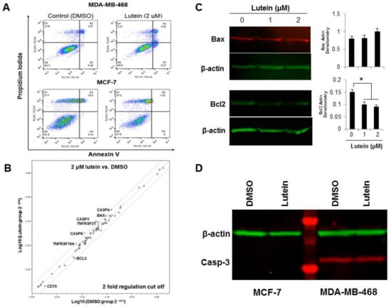 2.3. Lutein Induces Minimal Apoptotic Cell Death in Breast Cancer Cells