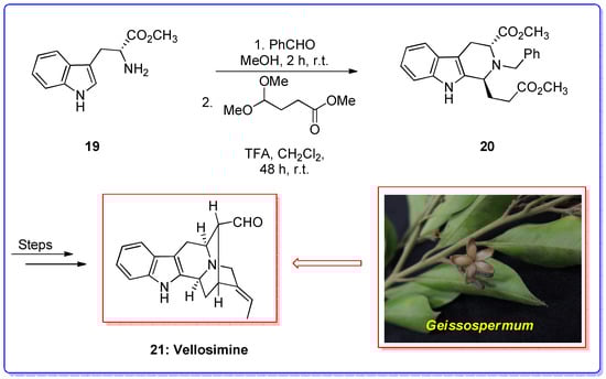 - Dalpozzo, R. The Chiral pool in the Pictet–Spengler reaction for the synthesis of β-Carbolines. Molecules 2016, 21, 699. [Google Scholar] [CrossRef] [PubMed]