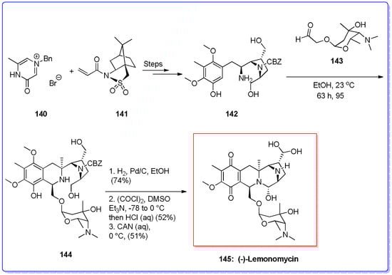 - Ashley, E.R.; Cruz, E.J.; Stoltz, B.M. The total synthesis of (−)-lemonomycin. J. Am. Chem. Soc. 2003, 125, 15000–15001. [Google Scholar] [CrossRef] [PubMed]