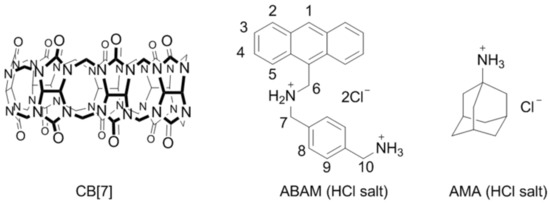 The structures of CB[7], ABAM, and AMA.
