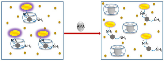 Schematic representation of the principle of indicator displacement assay for the detection of AMA using the complex CB[7]·ABAM as a fluorescent probe.