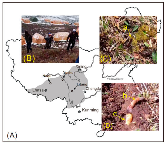 - Caplins, L.; Halvorson, S. Collecting Ophiocordyceps sinensis: An emerging livelihood strategy in the garhwal, indian himalaya. Mt. Sci. 2017, 14, 390–402. [Google Scholar] [CrossRef]