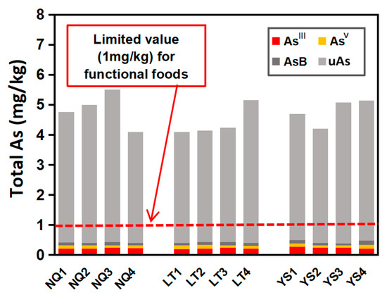- Tang, L.; Zhang, L.L. Arsenic speciation of dried Lentinus edodes by HPLC-ICP-MS. Food Ind. 2015, 36, 275–277. [Google Scholar]