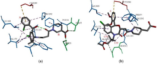 TAK-475 was then successfully docked into the active pocket, which further indicated the docking model was reasonable. The CDOCKER energy and CDOCKER interaction energy of TAK-475 were 55.34 and 74.39, which were both higher than the scores of D99. The interaction between TAK-475 and the active site was further analyzed. TAK-475 formed the hydrogen bond interactions with GLN212, and formed the hydrophobic interactions with PHE54, ALA176, VAL179, LEU183, LEU211, and PRO292 (shown in Figure 2b). D99 and TAK-475 both formed hydrophobic interactions with PHE54, VAL179, LEU183, LEU211, and PRO292. Thus, these amino acids were regarded as key residues, which is consistent with the literature [25,26].