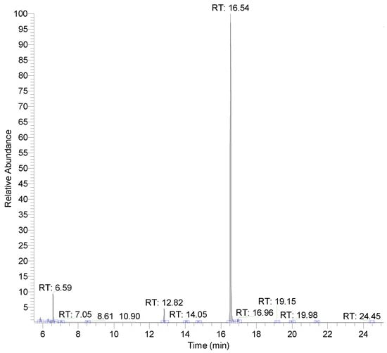 - Adams, R.P. Identification of Essential Oil Components by Gas. Chromatography/Mass Spectrometry; Allured Publishing Corporation: Carol Stream, IL, USA, 2007; pp. 6–398. ISBN 978-1932633214. [Google Scholar]