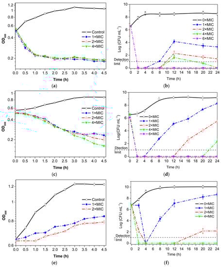 2.4.2. Growth Curve and Time–Kill Kinetics Analysis