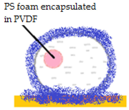 “Sandwich” liquid marble including PS foam covered in PVDF.