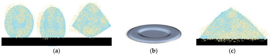 For the particle to get attached to the drop, a part of the liquid-air interface area and a part of the solid-air interface area , are being replaced with the solid-liquid interface area . Once attached to the drop, the particle’s energy, , changes. It can be determined using the following Equation (5):