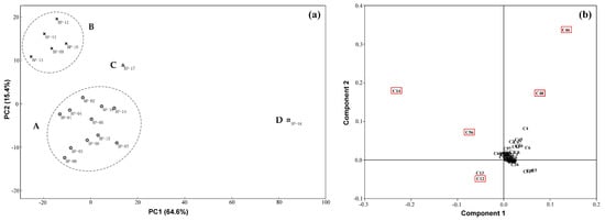 2.4. Multivariate Statistical Analysis with PCA and HCA