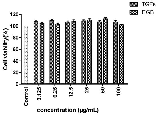 2.7.1. Cytotoxicity Effects of TGFs on Raw 264.7 Cells