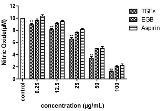 2.7.2. Effects of TGFs on LPS-Treated Overproduction of NO in Raw 264.7 Cells