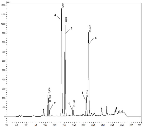 2.1. Preliminary HPLC Analysis and Screening of Activity of Extracts