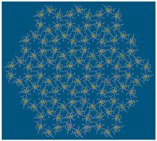 Stacking diagram of 1 along the c axis showing the regular array of hexahydric rings and the PF6− anions.
