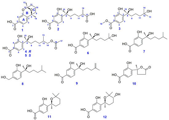 Thestructures of compounds 1–12.