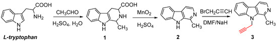 3.2. Synthesis of 1-Methyl-9-(prop-2-yn-1-yl)-β-carboline (3)
