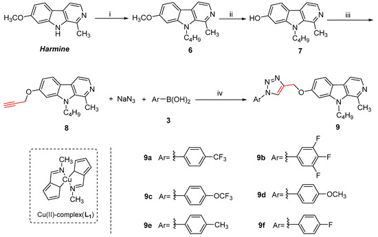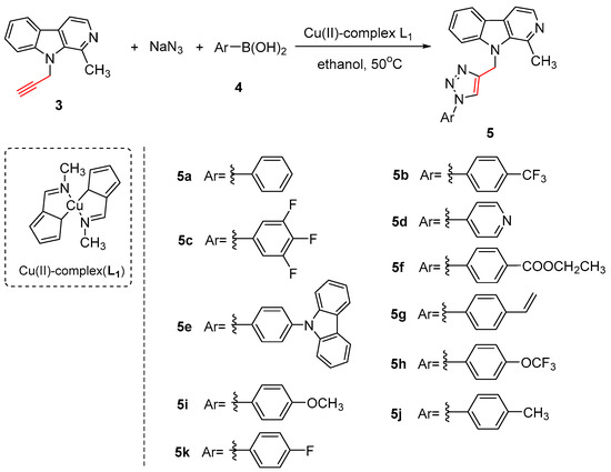 3.4. General Procedure for the Synthesis of 1,2,3-Triazolyl-β-Carboline Hybrids (5 and 9)