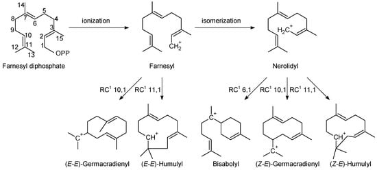 - Hackl, T.; Konig, W.; Muhle, H. Isogermacrene A, a proposed intermediate in sesquiterpene biosynthesis. Phytochemistry 2004, 65, 2261–2275. [Google Scholar] [CrossRef] [PubMed]