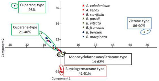 - Ludwiczuk, A.; Asakawa, Y. Chemotaxonomic value of essential oil components in liverwort species. A review: Chemotaxonomic value of essential oils from liverworts. Flavour Fragr. J. 2015, 30, 189–196. [Google Scholar] [CrossRef]