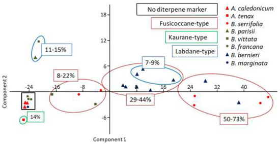 | determined diterpene | 19.1 | 2.1–2.2 | 16.4 | 3.2 | 50.4–74.7 | 18.4–26.3 | 34.6–60.8 | 65.1 | 0.6 | 20.5–34 | 17.0 | 1.3–7.1 | |