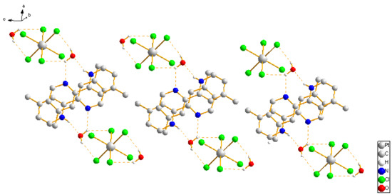 - Adams, C.J.; Angeloni, A.; Orpen, A.G.; Podesta, T.J.; Shore, B. Crystal synthesis of organic anorganic hybrid salts based on tetrachloroplatinate and -palladate salts of organic cations: Frmation of linear, two-, and three-dimensional NH center dot center dot center dot Cl hydrogen bond networks. Cryst. Growth Des. 2006, 6, 411–422. [Google Scholar] [CrossRef]