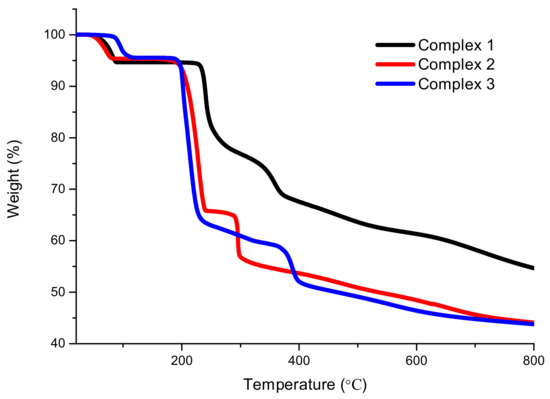 3.2. Synthesis of the Three Complexes