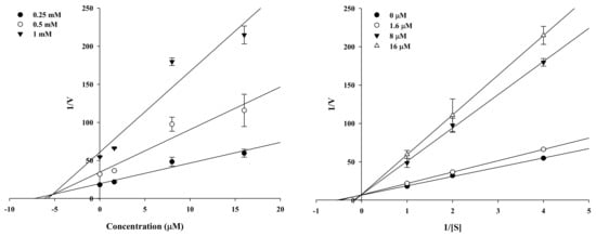 Dixon plots and Lineweaver–Burk plots for mushroom tyrosinase inhibition of kuwanon G.