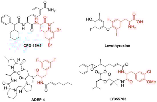 Chemical structures of some biologically active molecules containing α-phenylalanine subunits.
