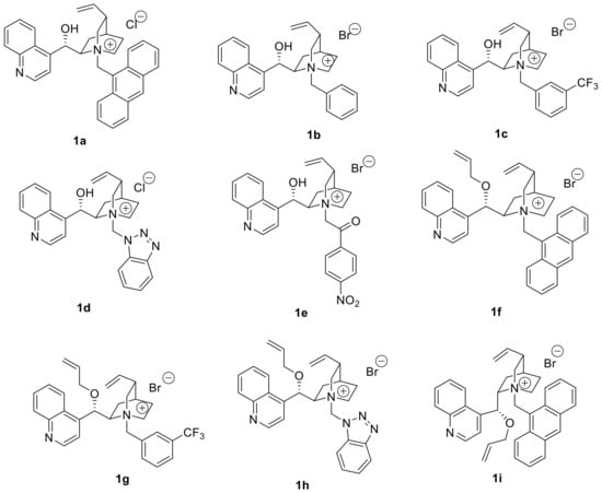 - Boratynski, P.J.; Kowalczyk, R.; Kobylanska, A.; Bakowicz, J. Tricyclic quaternary ammonium salts derived from cinchona alkaloids. J. Org. Chem. 2016, 81, 12489–12493. [Google Scholar] [CrossRef] [PubMed]