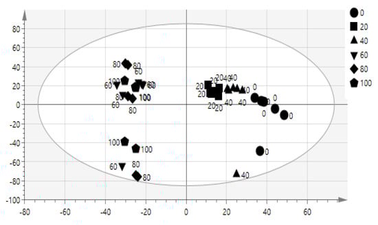 Orthogonal partial least-squares (OPLS) score plot of different concentration of salak extracts.