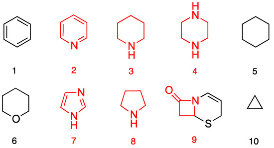 - Taylor, R.D.; MacCoss, M.; Lawson, A.D.G. Rings in Drugs. J. Med. Chem. 2014, 57, 5845. [Google Scholar] [CrossRef] [PubMed]