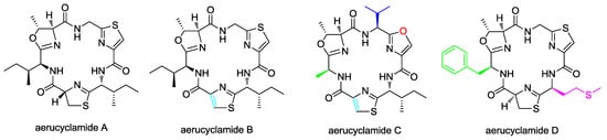 - Portmann, C.; Blom, J.F.; Gademann, K.; Jüttner, F. Aerucyclamides A and B: isolation and synthesis of toxic ribosomal heterocyclic peptides from the cyanobacterium Microcystis aeruginosa PCC 7806. J. Nat. Prod. 2008, 71, 1193–1196. [Google Scholar] [CrossRef] [PubMed]