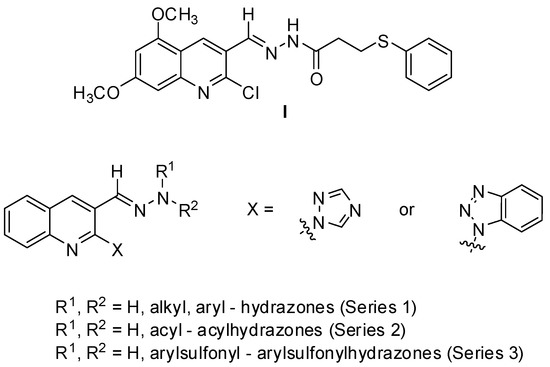 Known (I) and newly designed (Series 1–3) hydrazones of quinoline-3-carbaldehyde.