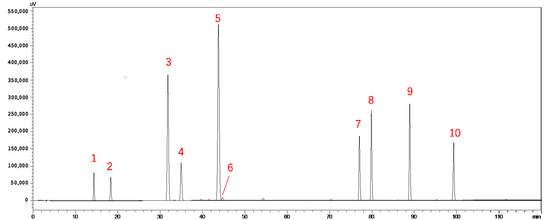 2.4. Identification of Ten Chemical Components by Comparison with Standard Materials