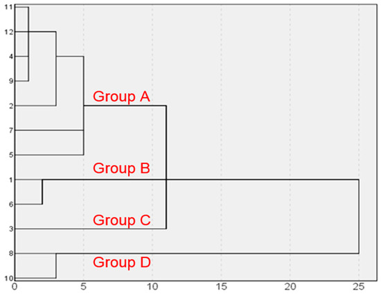 Results of Hierarchical Cluster Analysis of twelve samples.